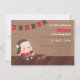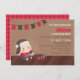 Un mignon petit bûcheron en tourne un ! Des invités Invitations célèbrent l'anniversaire du petit avec cette mignonne invitation qui a un bébé habillé de mini-bûcherons de casquette trappeur, de chemise rouge plaid, de bretelles et de pantalon bleu denim. Il s'accroche à une hache pour couper le gâteau en rondins de chocolat d'anniversaire décoré de champignons de tabouret. motif plissé de bannières de jonction rouge et marron et de sol en bois marron pour arrière - plan. Personnalisez facilement les détails de votre fête d'anniversaire en modèles texte.