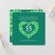 Cartes d'invitation pour le 55e anniversaire de mariage sous le thème de l'émeraude. Effet de pierres précieuses émeraudes dans une forme de cœur imprimée graphiquement, invitations pour le 55e anniversaire de mariage à personnaliser avec vos propres détails de fête d'anniversaire de mariage. Le 55e anniversaire est traditionnellement associé aux émeraudes et le cœur symbolise l'amour. Graphismes et conception de Sarah Trett pour www.mylittleeden.com