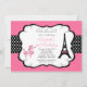 Commencez-vous fête d'anniversaire de fille outre de la droite avec notre caniche rose élégant et chic et invitations françaises de partie d'anniversaire de enfant de Tour Eiffel. Notre caniche rose mignon dans l'invitation de Paris comporte un petit caniche rose mignon avec Tour Eiffel de Paris entouré avec un cadre de fantaisie réglé sur un arrière - plan rose foncé avec une bande noire et blanche de point de polka. L'invitation de fête d'anniversaire de filles de caniche comporte un dos coordonné. Visitez notre magasin pour assortir vous remercient des cartes de note, autocollants d'anniversaire, merci des autocollants et des timbres-poste. Conceptions de Babystar de ©