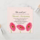 Invitations et invitations nuptiales de douche de marguerite assez verte et rose de gerbera avec trois longues marguerites refoulées de gerber sur un arrière - plan rayé rose. © Chrissy H. Studios, LLC d'illustration. Tous droits réservés.
