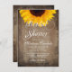 Invitations rustiques de Fête de la mariée de tournesol de pays avec l'arrière - plan brun affligé avec un beau grand tournesol jaune au dessus. Les mots de "Fête de la mariée" sont très grands et en manuscrit. La présente partie des mots fait partie de l'arrière - plan et ne peut pas être éditée. (contactez-moi si vous avez besoin d'une autre couleur). Ce sont grands pour le pays jeune-à-sont et n'importe qui qui aime un rustique ou regard affligé par cru et emploient des tournesols dans leurs décorations ou bouquets de mariage.