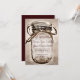 Les invitations rustiques de mariage campagnard de pot de maçon avec une sépia ont teinté le pot de maçon sur un arrière - plan affligé. Le pot de maçon a un arc attaché autour de lui. Le dos de l'invitation est brun foncé avec le mot "amour" est le manuscrit blanc au centre. Ces invitations les épousant affligées sont grandes pour n'importe quel mariage de style campagnard comprenant des mariages rustiques, des mariages de grange, et tous les mariages utilisant des pots de maçon dans le décor de réception de mariage.
