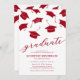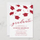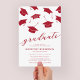 Des invitations minimalistes à des soirées de remise de diplômes avec des casquettes en mortier rouge, et un modèle de texte moderne facile à personnaliser.