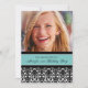 Photo personnalisée Invitations à la fête d'anniversaire 21st Birthday dans l'élégante mosaïque florale classique bleu turquoise, noir et blanc. Ajoutez votre nom, votre photo et les détails de votre fête pour une invitation unique et élégante à la fête du 21e anniversaire.