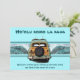 Un vintage boisé équipé d'une paire de longboards, trouve la parfaite double onde de rupture. L'onde illustrée a une image fantôme d'un hibiscus pareau imprimé. La plaque d'immatriculation de la Californie vintage indique Beachin'. Cette invitation personnalisable est disponible en deux couleurs.