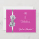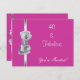 Invitation Birthday Event Celebration Party Pink with Silver Metal Trim with Silver Love heart bow, Fabulous at 40. Can Customised for any age.