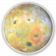 Io is the yellow volcanic moon of Jupiter. The yellow is sulphur, and the black and orange splotches are volcanos.