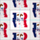 Patriotic American state flag of Iowa, modern cool unique typography text design, easily customize the white background colour from a range of colours to create a unique modern custom Americana design.