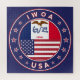 Badge of Iowa with flag of Iowa and flag of USA colors, rounded shape.