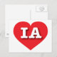 This postcard features a vibrant red heart containing the bold, white, upper case letters IA, the official abbreviation for Iowa, the hawk eye state. The reverse side of the postcard is blank, awaiting your customized text or handwritten sentiments.