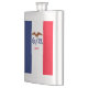 The product is a good size and came exactly as it was pictured.  The lid is not attached to the flask, which could be dangerous on drunken nights... The print came out surprisingly well and looks very sharp.  Would definitely recommend.
