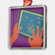 I was impressed by the quality and size of the ornament. Metal framing and design were perfect. Definitely recommend any of the metal framed ornaments. I ordered different ones all of the same quality and personalized professionally. Perfect No pictures as they were all gifts