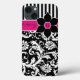 This personalized black and white Case-Mate Barely There iPad mini Retina display case has a floral damask and striped background pattern with a hot pink, black, and white band and flower with circle to add your name, initial, monogram or other text to. This modern and trendy new case makes a chic statement for the hip young fashionista! If you need assistance, email niteowlstudio@gmail.com.