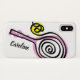 Iphone personnalisé 10 coque design pour les joueurs de tennis. Couverture téléphonique personnalisée avec design artistique de raquette de tennis rose et balle de tennis jaune. Ajoutez vos propres nom, devis ou monogrammes. Dessin d'art sportif de raquette de tennis. Cadeaux d'anniversaire personnalisables pour hommes sportifs, femmes et enfants. Une idée cadeau élégante pour le joueur, le fan et l'entraîneur. Typographie de script de brosse élégante. Créez une pour maman, soeur, fille, amie, coéquipière, partenaire double, formateur, enseignant, grand-mère, cousin, fille, etc. Accessoires Iphone X pour elle.