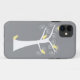 Cinq adorables oiseaux jaunes abstraits pendent dans un arbre blanc contre un arrière - plan gris sur un coque iphone