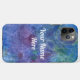 iPhone 11 Pro Max coque abstrait cosmos bleu violet teint noué boîtier téléphone batik. Personnalisé avec votre nom ou votre sentiment. C'est un effet de texture de teinture de cravate de mes dessins. Couleurs cool bleu, vert et violet feront certainement une déclaration dans votre tenue tendance. Inesmiller.com Profitez !
