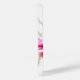 iPhone 14 case is shown with a pretty pink tropical floral design print.