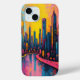 a vibrant cityscape infused with abstract modern art elements, where towering skyscrapers blend seamlessly with fluid shapes and dynamic forms. The city buzzes with energy, represented through bold, unconventional lines and bursts of colour—neon pinks, electric blues, and striking yellows—creating a surreal urban landscape that defies structure yet celebrates movement.