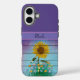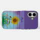 A pretty yellow Sunflower on a blue and purple barnboard faux painted design.