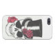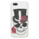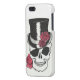 a glossy, well built case with a hardcore skull with roses design featuring a eye patch and top hat.