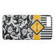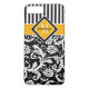 This personalized black and white Case-Mate custom iPhone 7 case has a floral damask and striped background pattern with a golden mustard yellow and white band and diamond to add your name, initials, monogram or other text to. This modern and trendy new case makes a chic statement for the hip young fashionista! If you need assistance, email niteowlstudio@gmail.com.