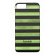 This personalized black and faux lime green foil striped Case-Mate custom iPhone 7 case has simulated glitter along the faux foil stripes. Add your name, initials, monogram or other text to this modern and trendy new case and show everyone what a chic fashionista you are! If you need assistance, email niteowlstudio@gmail.com.