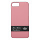 iPhone 7 case shown in pink with a black accent strip with a Miss America pageant style crown and custom name and title. Customize this item and change the text to what you need.