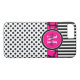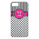 This personalized black and white Case-Mate custom iPhone 7 case has a fun polka dot, striped background pattern with a hot pink and black giraffe print band and circle to add your name, initials, monogram or other text to. This modern and trendy new case makes a chic statement for the hip young fashionista! If you need assistance, email niteowlstudio@gmail.com.