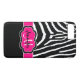 This personalized black and white Case-Mate custom iPhone 7 case has a fun zebra print striped background pattern with a hot pink and black band to add your name, initials, monogram or other text to. This modern and trendy new case makes a chic statement for the hip young fashionista! If you need assistance, email niteowlstudio@gmail.com.
