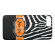 This personalized black and white Case-Mate custom iPhone 7 case has a fun zebra print striped background pattern with an orange and black band to add your name, initials, monogram or other text to. This modern and trendy new case makes a chic statement for the hip young fashionista! If you need assistance, email niteowlstudio@gmail.com.