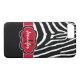 This personalized black and white Case-Mate custom iPhone 7 Plus case has a fun zebra print striped background pattern with a red and black band to add your name, initials, monogram or other text to. This modern and trendy new case makes a chic statement for the hip young fashionista! If you need assistance, email niteowlstudio@gmail.com.