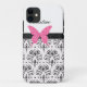 iPhone 5 case with pretty pink butterfly and damask pattern with white accent colour you can change. Customize the monogram with any name or initials. Protects your mobile phone in style and has openings for all your ports and buttons. Designed for ladies or girls and anyone who collects butterfly things.