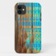 iPhone case blue Aztec pattern print on wood.