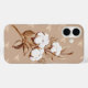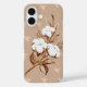 Bring a touch of rustic charm to your iPhone 16 with our soft cotton blossom case. The design features a beautifully rendered cluster of fluffy white cotton flowers, complete with warm brown stems and leaves, creating a natural and comforting aesthetic. Delicate, faded cotton plant silhouettes are subtly scattered across a gentle beige background, enhancing the overall organic feel. This case offers a unique blend of botanical beauty and cozy simplicity while providing reliable protection for your iPhone 16.