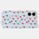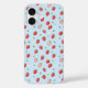 Une motif joyeuse remplie de fraises peintes à la main, de minuscules fleurs blanches et de feuilles verts sur un arrière - plan pastel bleu clair. Idéal pour les produits à thème printanier ou les imprimés en tissu mignon.