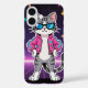 Un chaton de dessin animé élégant prend une pose confiante dans un monde d'arcade rétro et éclairé par des néons. Fusant une veste de bombardier rose chaud et des nuances bleues cool, ce félin est l'incarnation de la nostalgie des années 80 et de l'esprit futuriste. Avec des formes de pixels et des poutres de néon brillant dans l'arrière - plan, le chat rayonne de la confiance pure et swagger ludique.