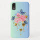 Débloquez une touche de fantaisie romantique avec cet iPhone ou coque ipad enchanteur. De délicieuses roses roses roses et des feuilles dorés chatoyants sont enchevêtrés avec d'élégants papillons bleus et des touches dorées à l'ancienne ornées de détails de coeur, le tout dans un doux dégradé pastel.