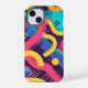 Des lignes vives, ondulées et des formes géométriques se mêlent dans une composition dynamique de rose, jaune et bleu. Un mélange harmonieux de couleurs et de motifs donne à l'oeuvre une atmosphère énergique et abstraite.