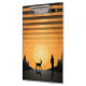 "Midnight Rendezvous: Man and Stag under the Golden Moon" presents a minimalist yet elegant design depicting a peaceful night scene. A man and stag, silhouetted against a starry sky, gaze at a radiant full moon that bathes the scene in a golden light. This artwork, with its black and gold outline, creates a serene and majestic ambiance, inviting contemplation of the universe's vast beauty. The simplicity of the design, focusing on the outlines of the figures and celestial elements, lends sophistication and mystery to the artwork.