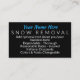 Promote your snow removal / snow plowing service with this simple, modern, iconic-design business card. Professionally designed and FULLY CUSTOMIZABLE (wording, fonts, colours, placement). It is sure to stand out from your business competitors and make you memorable among your customers. Carry a stack of cards at all times! Generous BULK DISCOUNTS apply. Be sure to see the coordinating T-shirts, hoodies, flyers, bumper stickers. (etc)