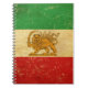 Notebook with the popular former Iranian Lion and Sun emblem flag (Shah of Iran flag) which was in use between 1925-1979 in vintage distressed grunge old style design. This scratched design features the old Iranian flag in retro vintage style. This state flag and ensign of the constitutional monarchy of Iran under the Pahlavi dynasty is a great way to show you are proud to be Iranian.