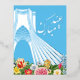 Celebrate the new year and spring solstice with this beautiful motif featuring a shimmering Azadi Tower and spring flowers. Send greetings to family and friends wishing them Eid Mobarak and Happy Nowruz!
