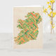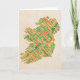 A typography text map of Ireland featuring over 590 cities and towns within Ireland. Green and orange text on a vintage style background.