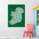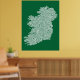 A typography text map of Ireland featuring over 590 cities and towns within Ireland. White text on a solid colour background.