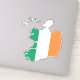 Ireland Flag Map Sticker in the outline of the Ireland map. The map is infused with the pattern and the colours from the Ireland national flag. Small stickers with the country name are also included. Ireland map sticker is the perfect sticky gift that can be placed anywhere your heart desire.