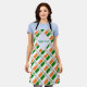 Apron features the green, white and orange Irish Flag with the word IRELAND below, in the colours of the flag. Design is tiled to give a more artistic touch. The white fractal of squiggly squares holds a place for a name. Make it special for yourself or a gift. Fun to wear to Irish family reunions.