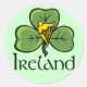 This Irish design features a large shamrock with an Irish harp and the caption "Ireland" in text below it, and works great for St. Patrick's day or any day.