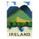Ireland "lakes and rolling hills" beautiful vintage style travel poster.