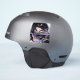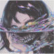 A surreal close-up of a dark-haired anime figure split by a rainbow liquid slash, revealing a razor-toothed grin. One eye burns gold while the other stays icy blue, blending cyberpunk energy with glitchcore, y2k chrome, and eerie horror vibes.