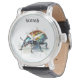 Keep time with a touch of unique, artistic style with this Iridescent Beetle in Watercolor watch. The watch face features a magnificent scarab beetle, its shell glowing with a spectrum of blues, greens, and golds that flow and blend together like a watercolor painting. This luminous design makes a beautiful and eye-catching statement piece for your wrist.